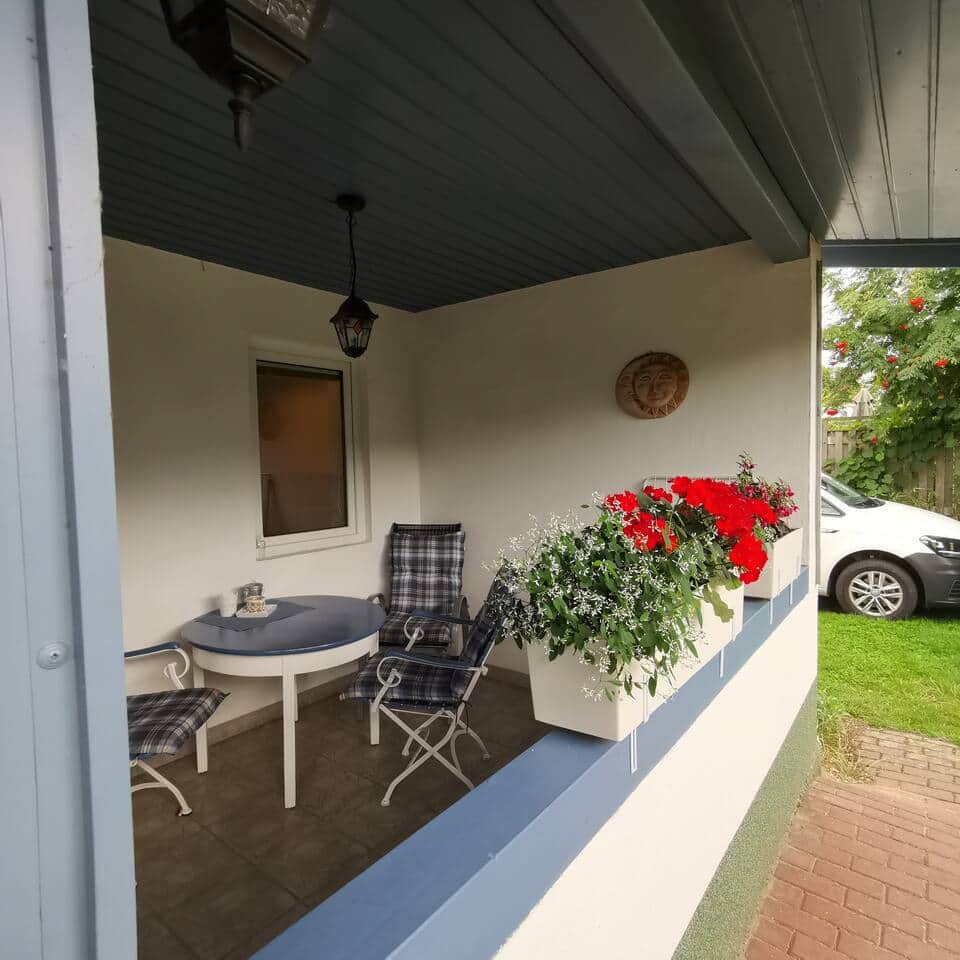 Herzlich willkommen bei uns! Lassen Sie die Seele baumeln und genießen Sie Ihren Aufenthalt in einer entspannten, warmherzigen Atmosphäre. Unsere überdachte Terrasse lädt selbst an Regentagen zum gemütlichen Verweilen ein. Ihr Auto parken Sie ganz bequem direkt neben der Wohnung auf einem abgeschlossenen Grundstück. Der weiche Sandstrand ist nur 900 Meter entfernt und das lebhafte Ortszentrum erreichen Sie in fünf Minuten zu Fuß. Für den täglichen Bedarf ist gesorgt: Ein Supermarkt, ein Bäcker und eine Drogerie befinden sich nur etwa 350 Meter entfernt.
