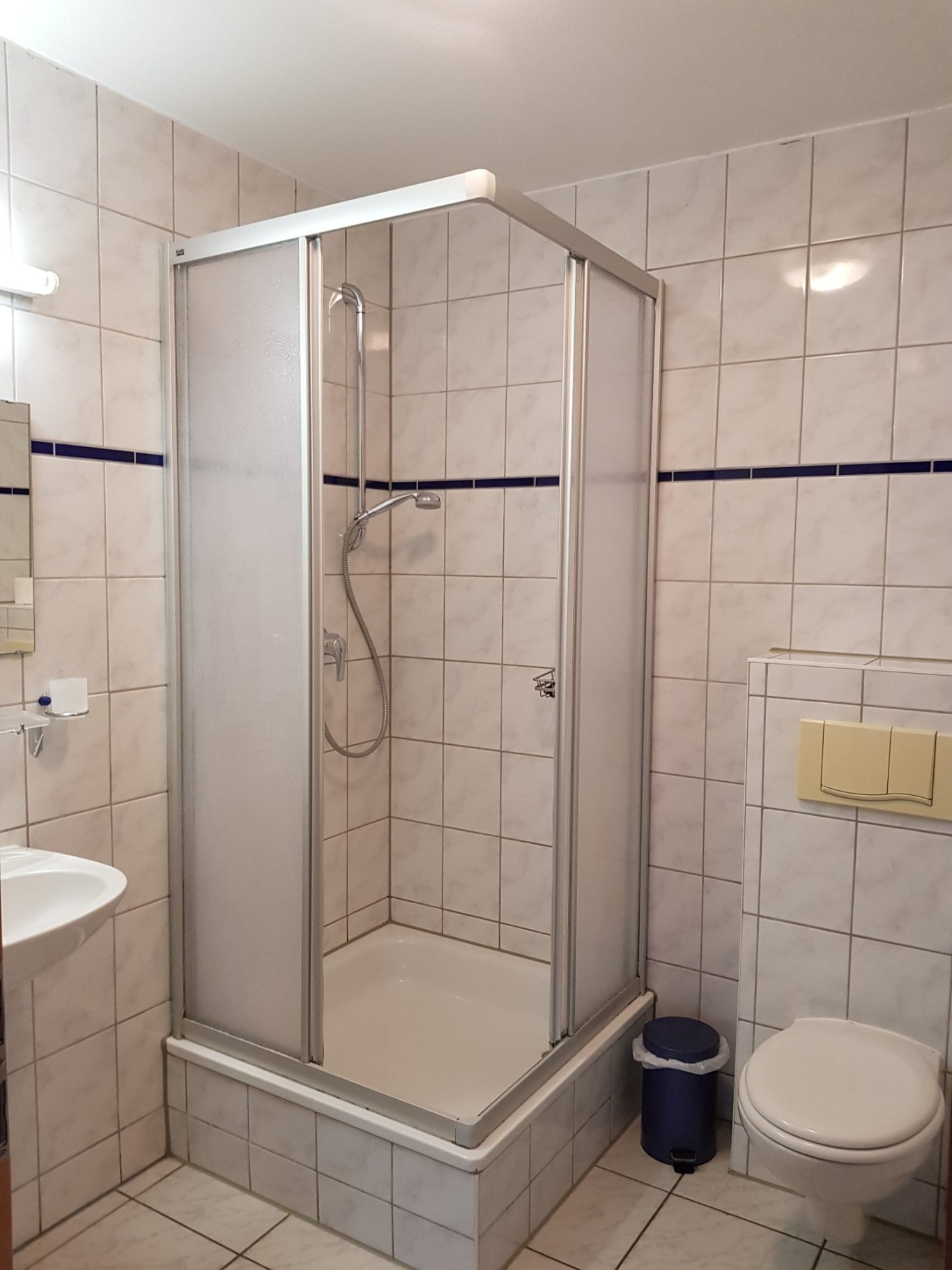 Vom Wohnbereich geht das Bad mit Dusche ab. Ein Fön ist vorhanden.