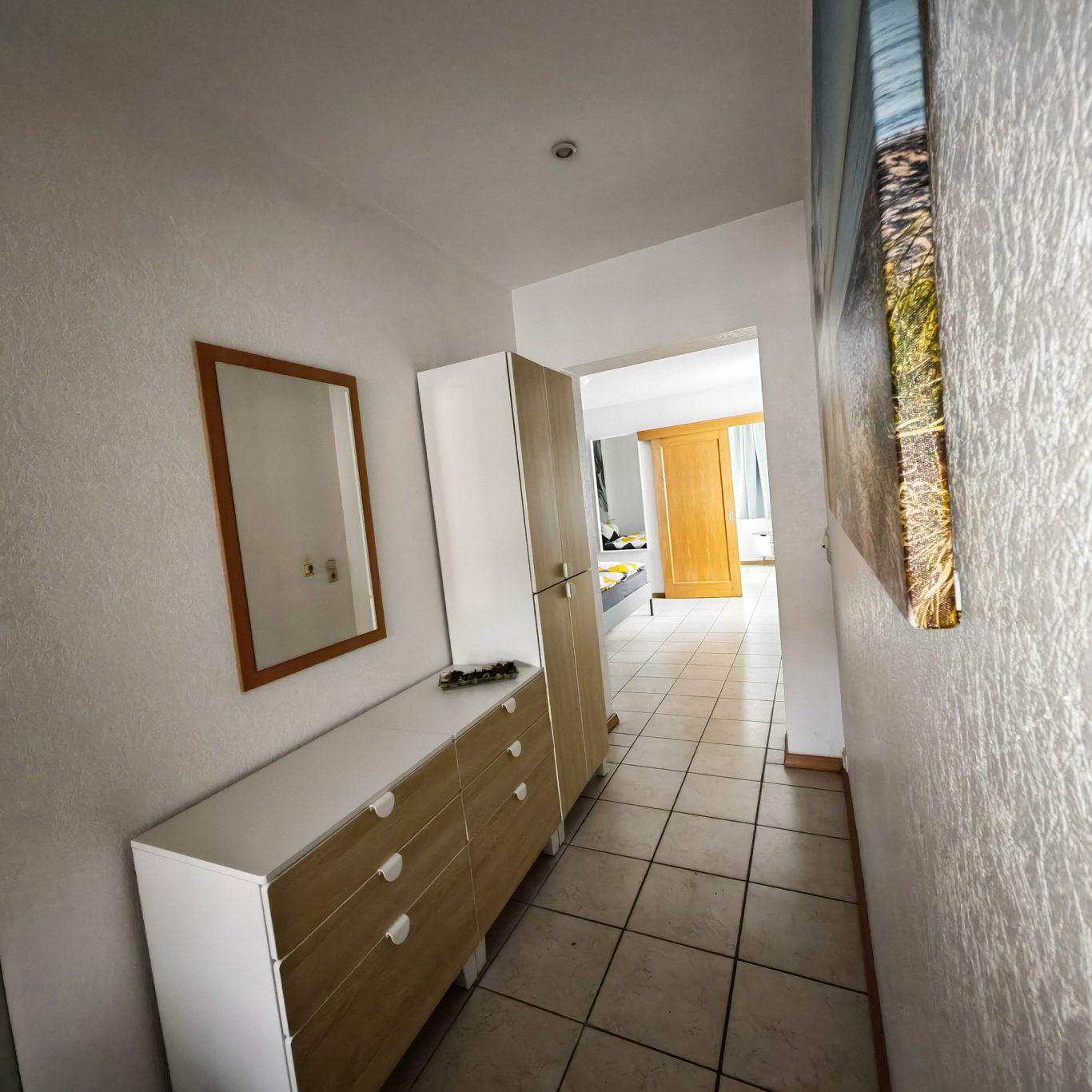Von dort geht es offen und einladend weiter ins Schlafzimmer.