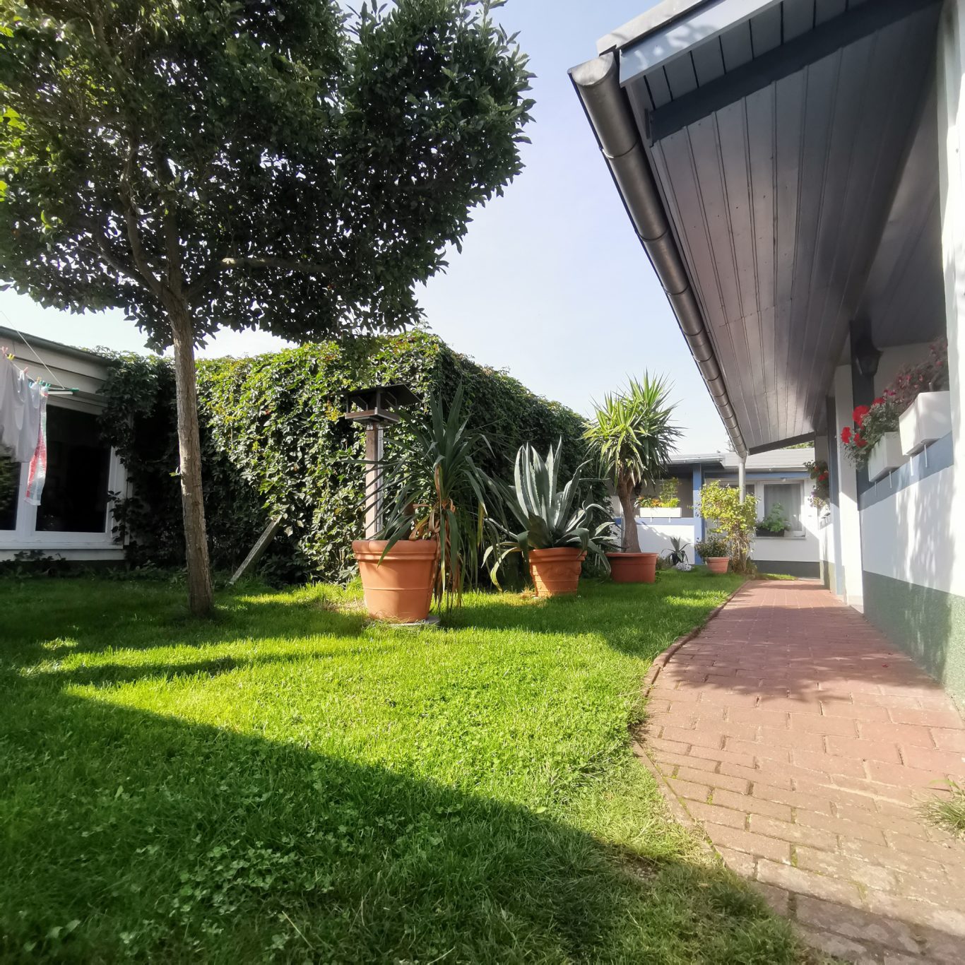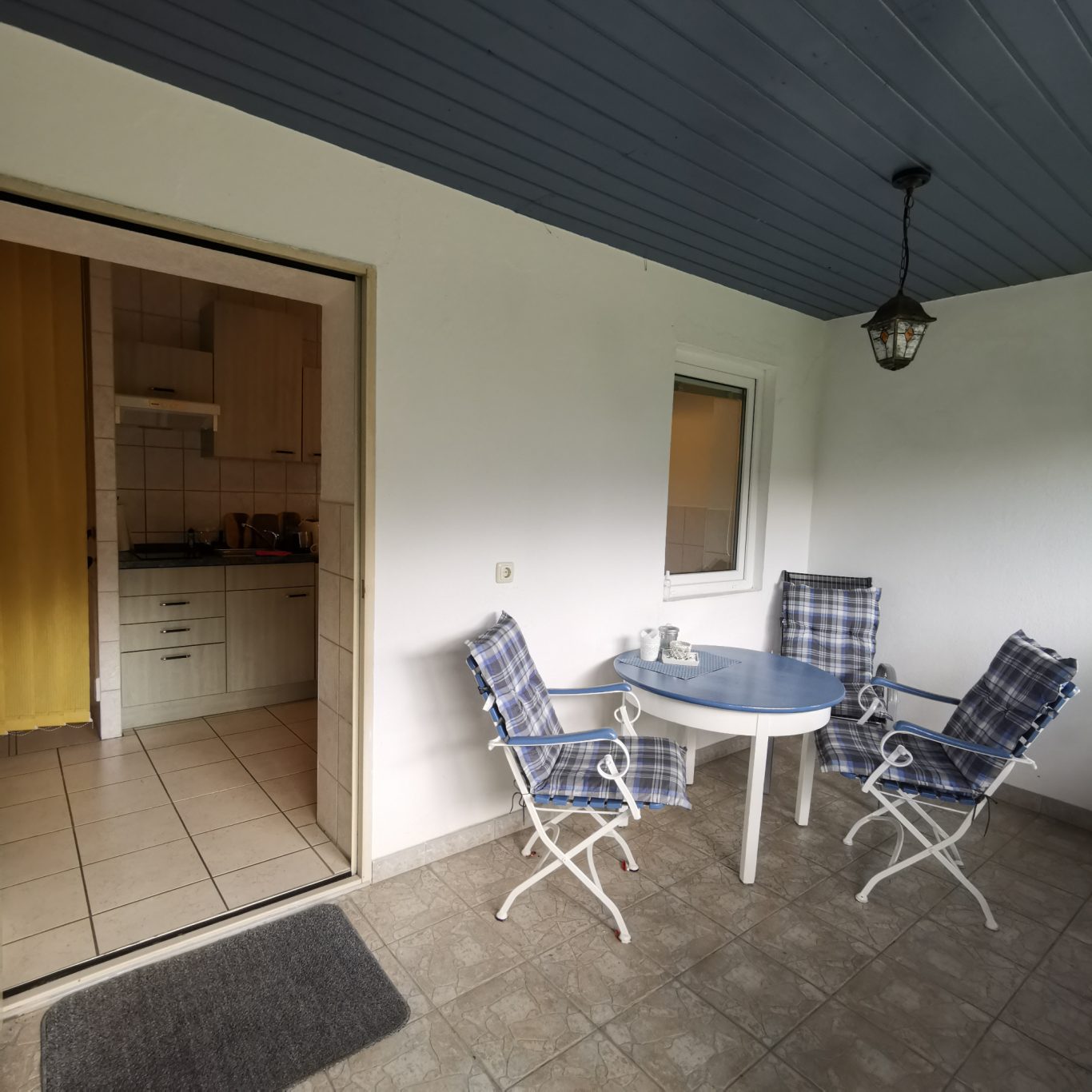 Über unseren Innenhof gelangen Sie über die Terrasse, die selbst an Regentagen zum Verweilen einlädt, direkt in die kleine, offene Küche.
