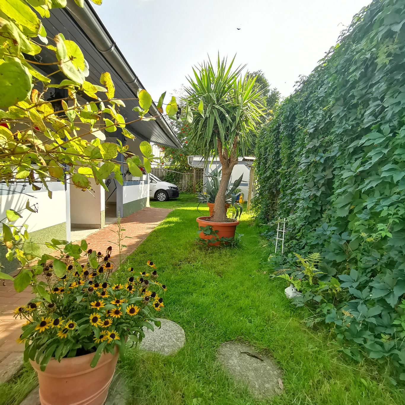 Lassen Sie die Seele baumeln und genießen Sie Ihren Aufenthalt in einer entspannten, warmherzigen Atmosphäre. Ihr Auto parken Sie ganz bequem direkt neben der Wohnung auf einem abgeschlossenen Grundstück.