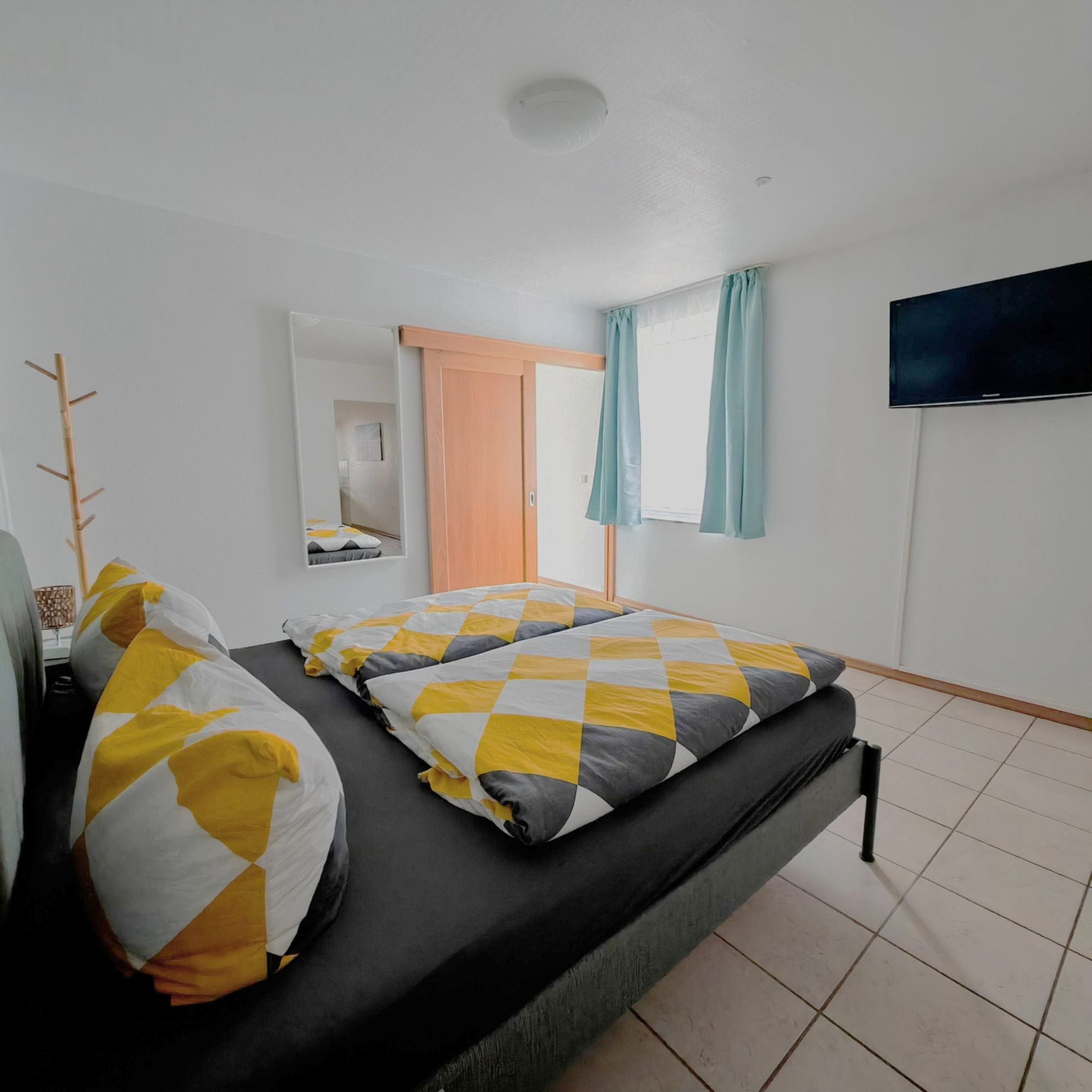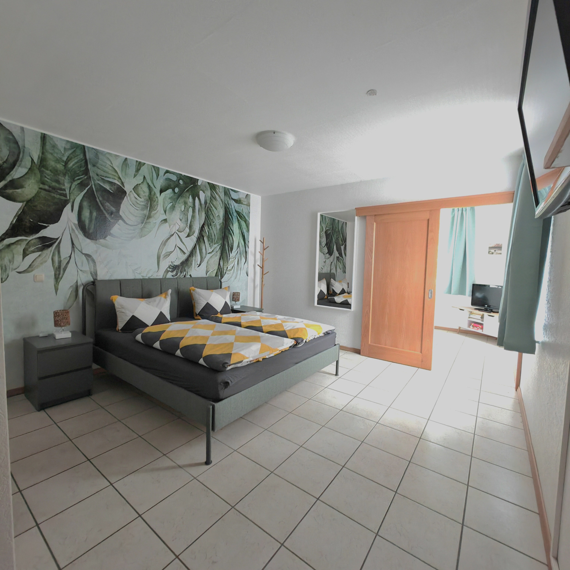 Im Schlafzimmer erwartet Sie ein großzügiges Doppelbett mit zwei bequemen Einzelmatratzen (insgesamt 180 x 200 cm) sowie Schränke zur Kleideraufbewahrung.